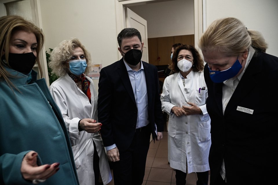 Movement for Change (KINAL) party leader Nikos Androulakis called today for mass vaccination and stronger backing for the NHS, even as he lambasted the government’s management of the pandemic, while on a visit to Athens’ Sotiria Pulmonary Diseases Hospital, one of the main COVID-19 reference hospitals in Athens.
