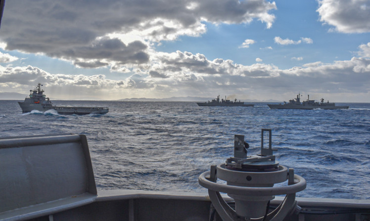Δείτε στο βίντεο τη στιγμή που το αεροσκάφος ναυτικής συνεργασίας εγκλωβίζει το εχθρικό υποβρύχιο (στο πλαίσιο της άσκησης) και εξαπολύει τορπίλη από τον αέρα.