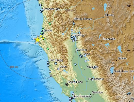 Σεισμός μεγέθους 6,2 Ρίχτερ σημειώθηκε στις 12:10 το μεσημέρι (22:10 ώρα Ελλάδος) ανοιχτά των ακτών της Βόρειας Καλιφόρνιας, σύμφωνα με το Ευρωπαϊκό Μεσογειακό Σεισμολογικό Κέντρο.