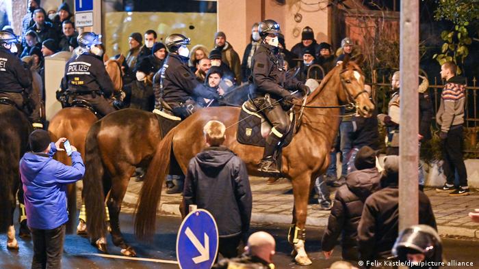 Στην πόλη Μπάουτσεν της Σαξωνίας οι διαδηλωτές προσέφυγαν στη βία όταν η αστυνομία προσπάθησε να διαλύσει πορεία περίπου 500 ατόμων. Σύμφωνα με τις αστυνομικές αρχές τα σώματα ασφαλείας δέχθηκαν επίθεση από τους διαδηλωτές αναγκάζοντάς τους να κάνουν χρήση σπρέι πιπεριού και γκλομπ. Οι αρχές ασφαλείας έκαναν λόγο για συμμετοχή «ακραίων στοιχείων» στις κινητοποιήσεις, καθώς και τη σύλληψη και ταυτοποίηση περίπου 100 ατόμων.