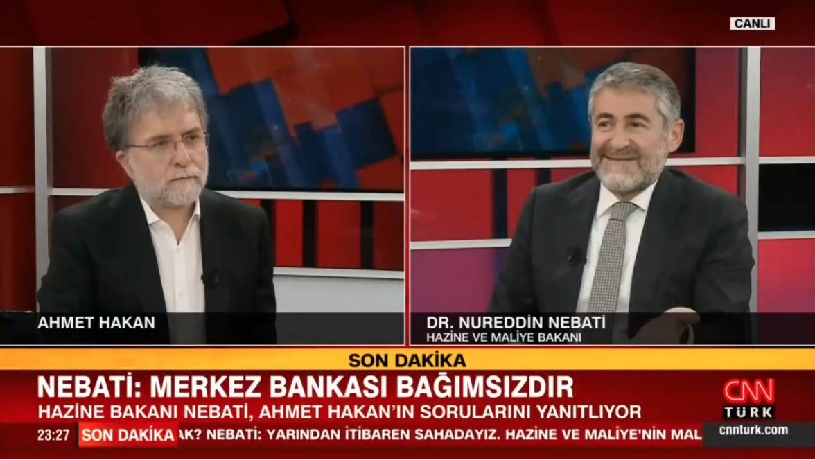 Ο Νουρεντίν Νεμπάτ, ο οποίος διορίστηκε στη θέση του υπουργού Οικονομικών στις 2 Δεκεμβρίου από τον πρόεδρο της Τουρκίας Ρετζέπ Ταγίπ Ερντογάν, προέβη σε αυτά τα σχόλια κατά τη διάρκεια συνέντευξής του στο CNN Türk αργά το βράδυ της Τετάρτης.