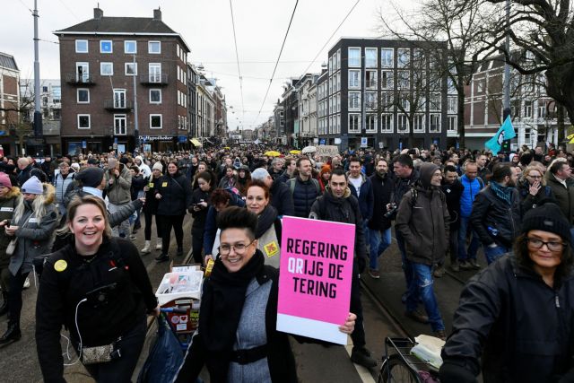 Οι δημόσιες συναθροίσεις άνω των δύο ανθρώπων απαγορεύονται βάσει των περιορισμών που επέβαλε η κυβέρνηση σε μια προσπάθεια να αποτρέψει το ενδεχόμενο η παραλλαγή Όμικρον του κορονοϊού να κατακλύσει το ήδη πιεσμένο υγειονομικό σύστημα της Ολλανδίας.