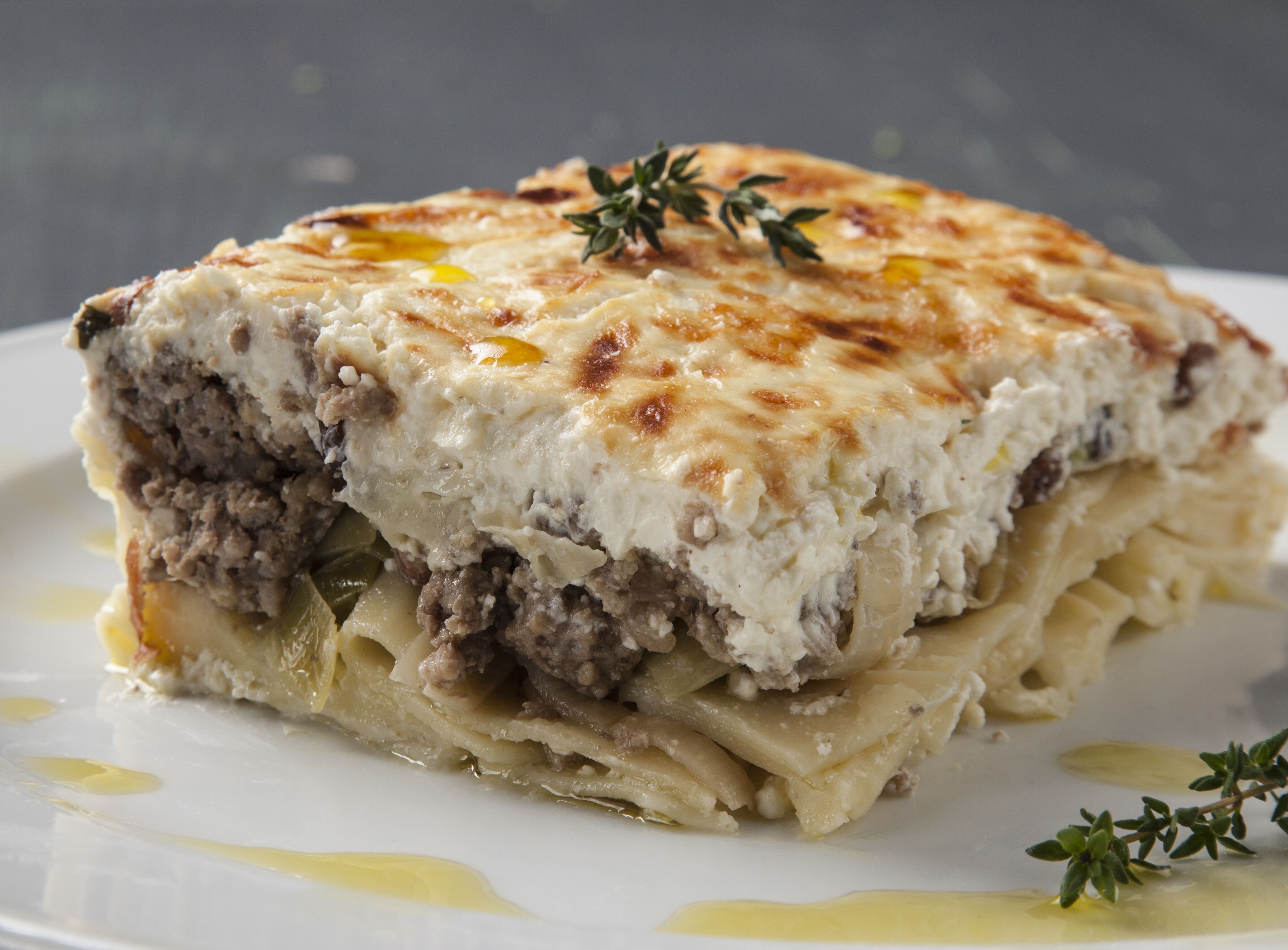 Προθερμαίνουμε τον φούρνο στους 170οC. Σε βουτυρωμένο ή λαδωμένο ταψί ή πυρέξ, στρώνουμε τις χυλοπίτες, από πάνω τον κιμά και καλύπτουμε με την «μπεσαμέλ». Πασπαλίζουμε με την υπόλοιπη γραβιέρα και ψήνουμε για περίπου 30΄-40΄.