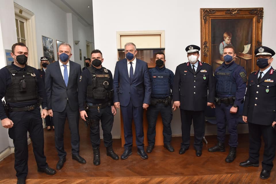 Χαρακτηριστικά έγραψε: «Κατά την επίσκεψη μου στο Α.Τ. Λευκού Πύργου, συνάντησα και τους αστυνομικούς που έσωσαν την 38χρονη γυναίκα από τον σύντροφο της για να τους συγχαρώ από κοντά όπως είχα υποσχεθεί τον Δεκέμβρη. Οι 4 αστυνομικοί έδειξαν το καλύτερο πρόσωπο της Ελληνικής Αστυνομίας και απέδειξαν για άλλη μια φορά ότι όταν η Αστυνομία είναι ελεύθερη να κάνει την δουλειά της, την κάνει με επαγγελματισμό, αποφασιστικότητα, ψυχραιμία και πάνω από όλα, ανθρωπιά. Η ελληνική Αστυνομία δίνει προτεραιότητα στην ενδοοικογενειακή βία που δυστυχώς γνώρισε έξαρση κατά την περίοδο της καραντίνας, εντείνοντας την εκπαίδευση των Αστυνομικών για καλύτερη ανταπόκριση κι επεκτείνοντας την υπηρεσία».