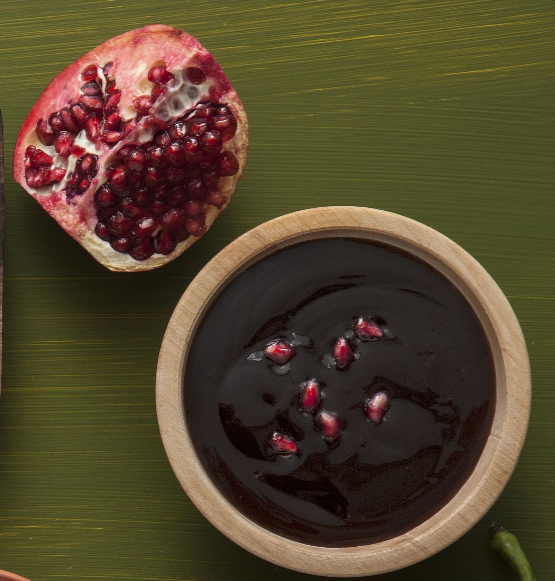 Βράζουμε σε μια κατσαρόλα τον χυμό ροδιού μέχρι να συμπυκνωθεί και να μείνει ο μισός (250 ml). Τον αφήνουμε να κρυώσει.