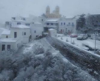 Η κακοκαιρία Ελπίς χτύπησε και την Τήνο με σχεδόν όλο το νησί να ντύνεται στα λευκά όπως αναφέρει το tinostoday.