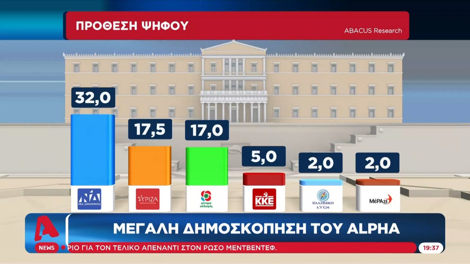 Μικρή ανατροπή του πολιτικού σκηνικού δείχνει η νέα δημοσκόπηση της Abacus, για λογαριασμό του Alpha.