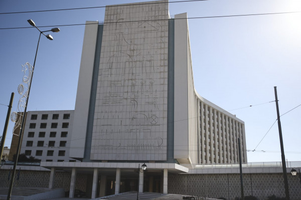 Οι κύριες όψεις του αποτελούνται από τα κάθετα πτερύγια, και τα στηθαία των μπαλκονιών στην οριζόντια διεύθυνση, ενώ στις δυο στενές όψεις διαμορφώθηκε σόκορο, δηλαδή τυφλές όψεις, οι οποίες φέρουν τις ανάγλυφες παραστάσεις του Γ. Μόραλη.