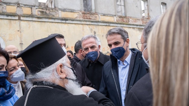 The prime minister inspected the ongoing works on the site of the former camp and one of the buildings that will be rebuilt and left to visit the Aliakmonas bridge and other works in the city.