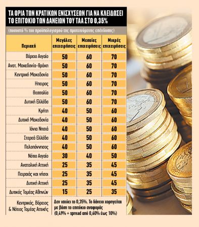 Οταν όμως το πλαφόν αυτό υπερκαλυφθεί, το κόστος αλλάζει. Οσο πιο μεγάλη η υπερκάλυψη, τόσο υψηλότερη είναι η αύξηση στο επιτόκιο. Πρόκειται για μία παράμετρο που αφορά κυρίως, αλλά όχι μόνο, επιχειρήσεις που θα ενταχθούν ταυτόχρονα και στον Αναπτυξιακό Νόμο.
