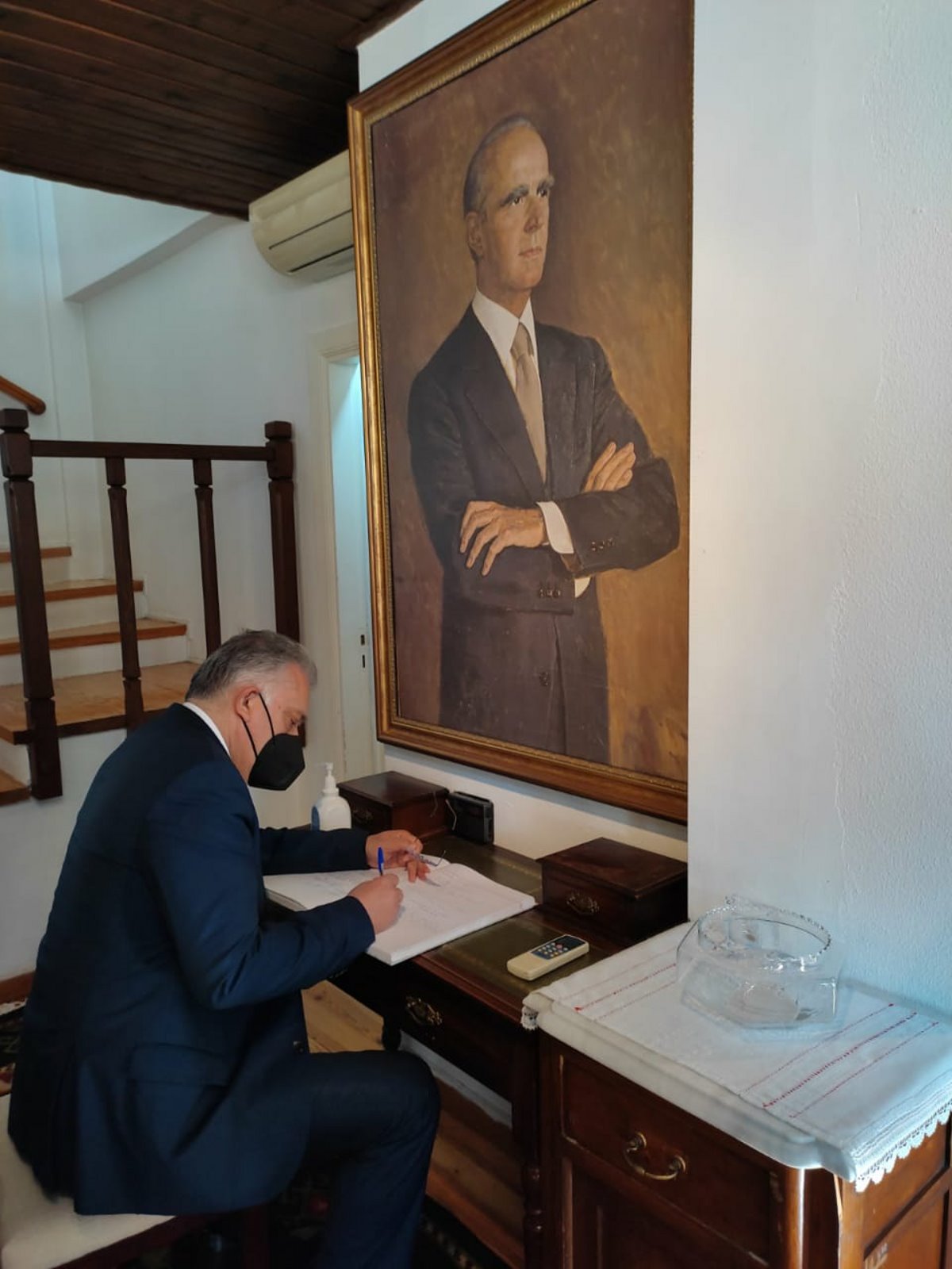 Στο σπίτι του ιδρυτή της Νέας Δημοκρατίας Κωνσταντίνου Καραμανλή στην Πρώτη Σερρών βρέθηκε ο Υπουργός Προστασίας του Πολίτη Τάκης Θεοδωρικακος.