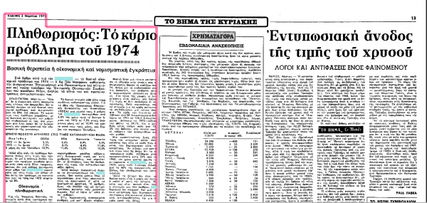 Οι ιστορικοί του παρελθόντος και τα μέσα ενημέρωσης της δεκαετίας του ’70, ’80 και ’90, καταγράφουν τα βάρη και τις ανησυχίες που κατά καιρούς έχουν προκαλέσει οι πληθωριστικές πιέσεις.