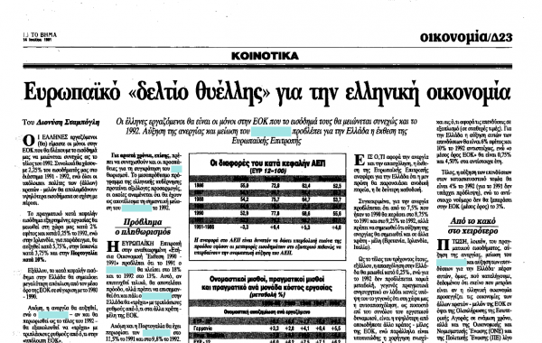 Από το 1991 ο πληθωρισμός στον κόσμο και στην Ελλάδα, υπό την πίεση της παγκοσμιοποίησης, γνωρίζει μία συνεχή πτώση που συνδυάζεται με την επικράτηση μίας ισχυρής πολιτικής αντίληψης για την είσοδο της Ελλάδος στον σκληρό Ευρωπαϊκό πυρήνα. Εδώ έπαιξε ρόλο και η διασύνδεση της δραχμής με το ευρωπαϊκό νομισματικό φίδι το οποίο παρεμπόδιζε τις σημαντικές νομισματικές δαιμόνισες άρα και την μεγάλη διολίσθηση της δραχμής.