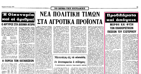 Πρωτοσέλιδα της δεκαετίας του ’70