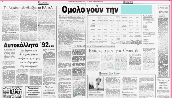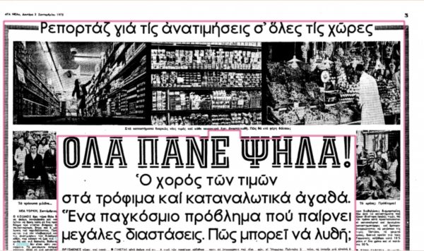 Πρωτοσέλιδα και ρεπορτάζ της τότε εποχής έχουν καλύψει το κύμα ακρίβειας που σάρωνε εισοδήματα και εκτροχίαζε τους οικογενειακούς προϋπολογισμούς.