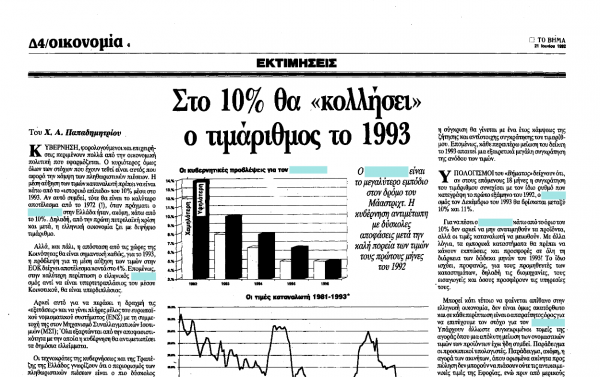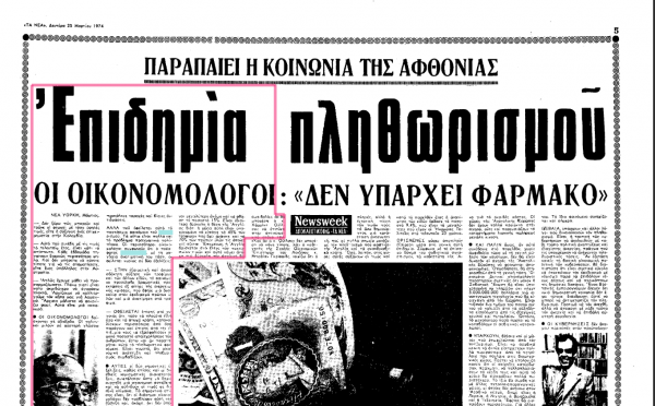 Φιλοξενούνται πρωτοσέλιδα και αρθρογραφία από τα έτη όπου ο πληθωρισμός εκτοξεύθηκε στην Ελλάδα (στις κρίσεις της δεκαετίας του ‘70,’80, ‘90), ταξιδεύοντας στον χρόνο μέσω του ιστορικού αρχείου του Οικονομικού Ταχυδρόμου, των ΝΕΩΝ και του Βήματος.