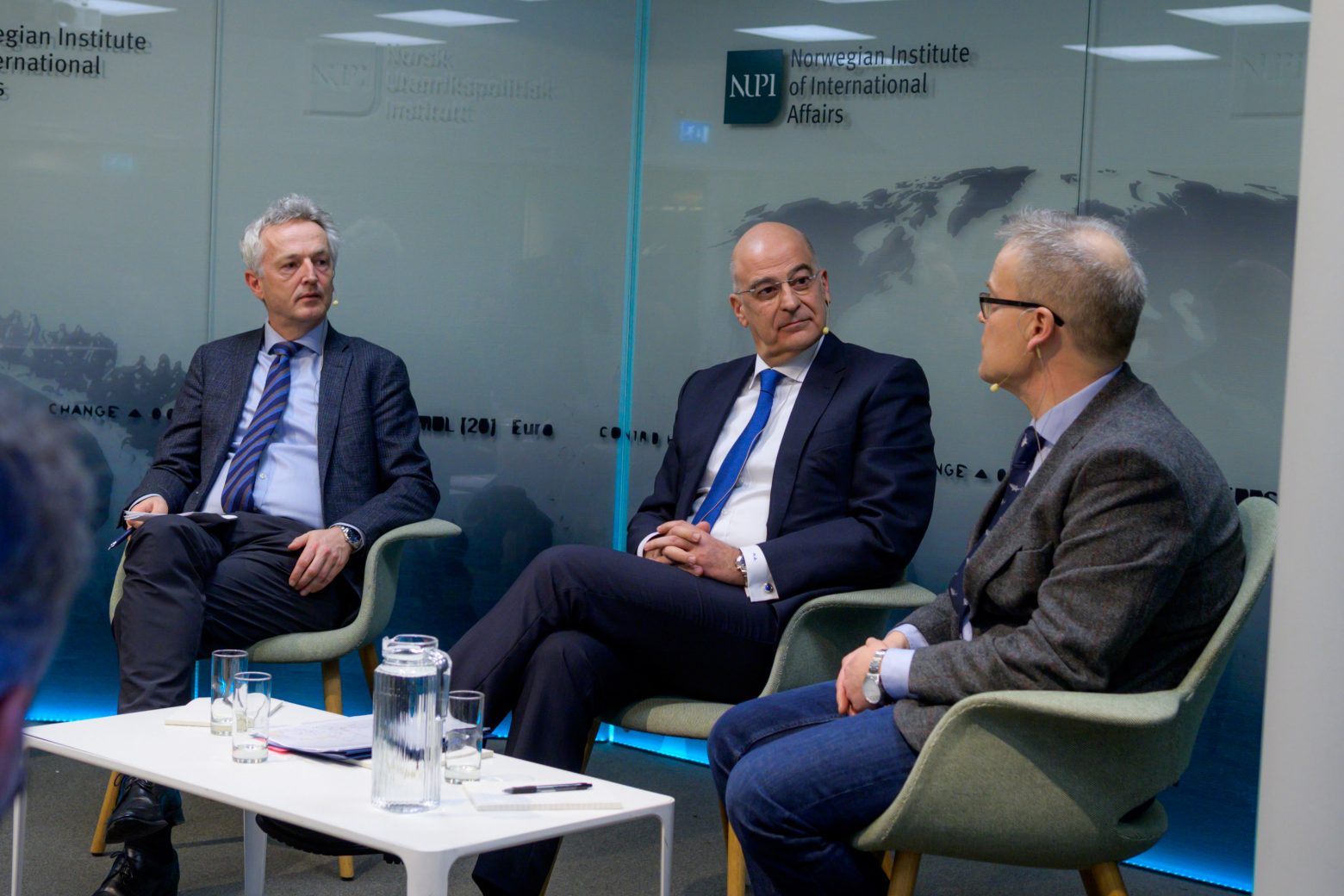 Τους προκλητικούς ισχυρισμούς για το Αιγαίο, καθώς και για το λεγόμενο τουρκολιβυκό μνημόνιο που του διατύπωσε ο Τούρκος πρέσβης στη Νορβηγία σε ερώτηση που του απηύθυνε μετά το πέρας της ομιλίας του στο Νορβηγικό Ινστιτούτο Διεθνών Υποθέσεων, αποδόμησε ο υπουργός Εξωτερικών Νίκος Δένδιας.