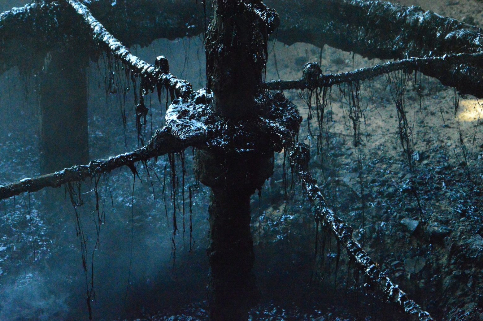 Ταξιδεύοντας στο χωριό Σελενίτσα στη νοτιοδυτική Αλβανία όπου γεννήθηκε και μεγάλωσε, η Τζόγκου δημιουργεί έργα με υλικά όπως η πίσσα που παράγεται στο μεταλλείο του χωριού, το οποίο αποτελεί τη βασική πηγή πόρων απαραίτητων για την επιβίωση της τοπικής κοινότητας.