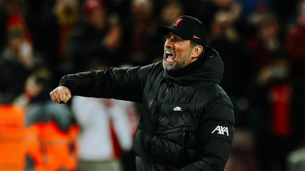 Με τη λήξη της αναμέτρησης, ο γερμανός τεχνικός πανηγύρισε έξαλλα μπροστά στο Kop με τις κλασικές γροθιές του, όμως αυτήν τη φορά το έκανε έξι φορές, όσα και τα γκολ των παικτών του.