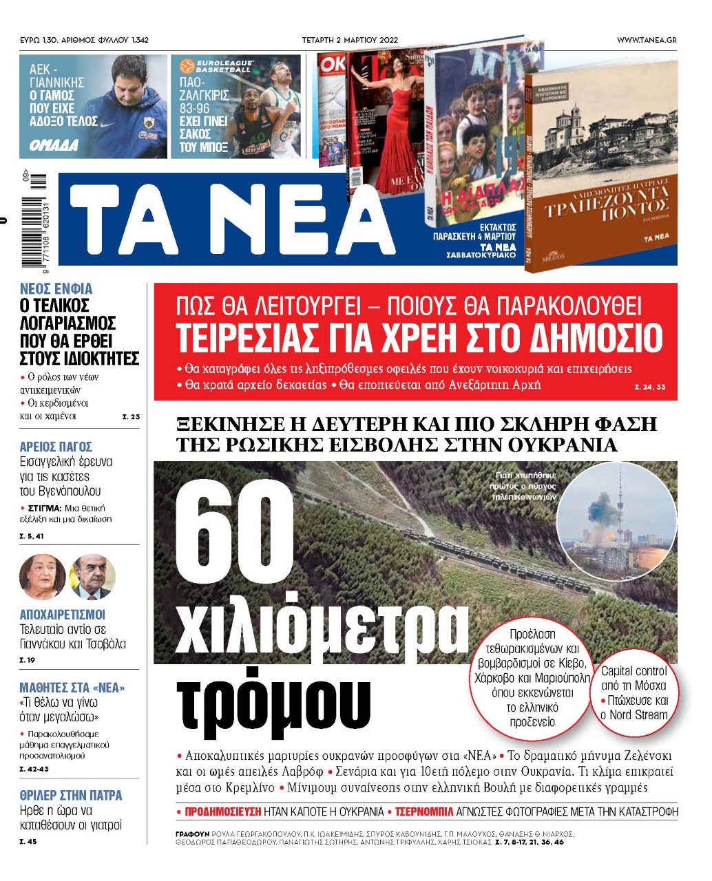 • Αποκαλυπτικές μαρτυρίες ουκρανών προσφύγων στα «ΝΕΑ» • Το δραματικό μήνυμα Ζελένσκι και οι ωμές απειλές Λαβρόφ • Σενάρια και για 10ετή πόλεμο στην Ουκρανία. Τι κλίμα επικρατεί μέσα στο Κρεμλίνο • Μίνιμουμ συναίνεσης στην ελληνική Βουλή με διαφορετικές γραμμές
