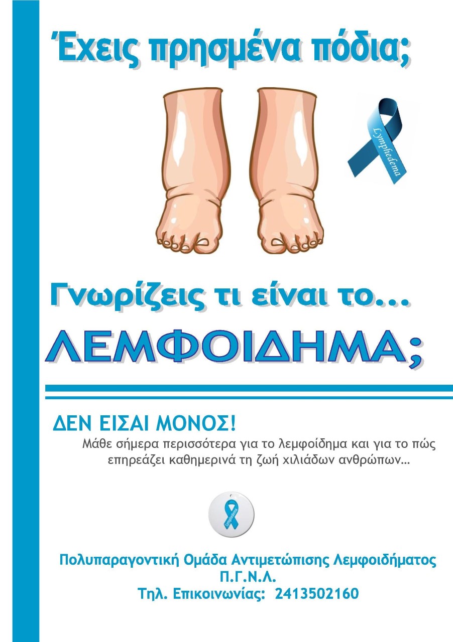 Το λεμφοίδημα είναι μια αρκετά συχνή πάθηση, που παρουσιάζεται με αύξηση του όγκου των άνω ή κάτω άκρων ή του κορμού λόγω δυσλειτουργίας του λεμφικού συστήματος (λεμφαδένες – λεμφαγγεία) και επηρεάζει σε μεγάλο βαθμό την ποιότητα ζωής των ασθενών. Είναι ιδιαίτερα συχνό μετά από χειρουργικές επεμβάσεις αντιμετώπισης καρκίνου του μαστού και των γεννητικών οργάνων. Πολλές φορές δεν διαγιγνώσκεται και αν διαγνωστεί δεν δίνονται οι απαραίτητες κατευθύνσεις στους ασθενείς. Η έγκαιρη διάγνωση του είναι απαραίτητη για την αποτελεσματικότερη αντιμετώπιση του. Το λεμφοίδημα δεν θεραπεύεται, αλλά εφόσον διαγνωστεί εγκαίρως αντιμετωπίζεται αποτελεσματικά με απλές μεθόδους και προλαμβάνονται οι δυσάρεστες επιπτώσεις του. Ειδικά στην περίπτωση του καρκίνου του μαστού, απλά μέτρα πρόληψης μπορούν να ελαχιστοποιήσουν τις πιθανότητες δημιουργίας λεμφοιδήματος.