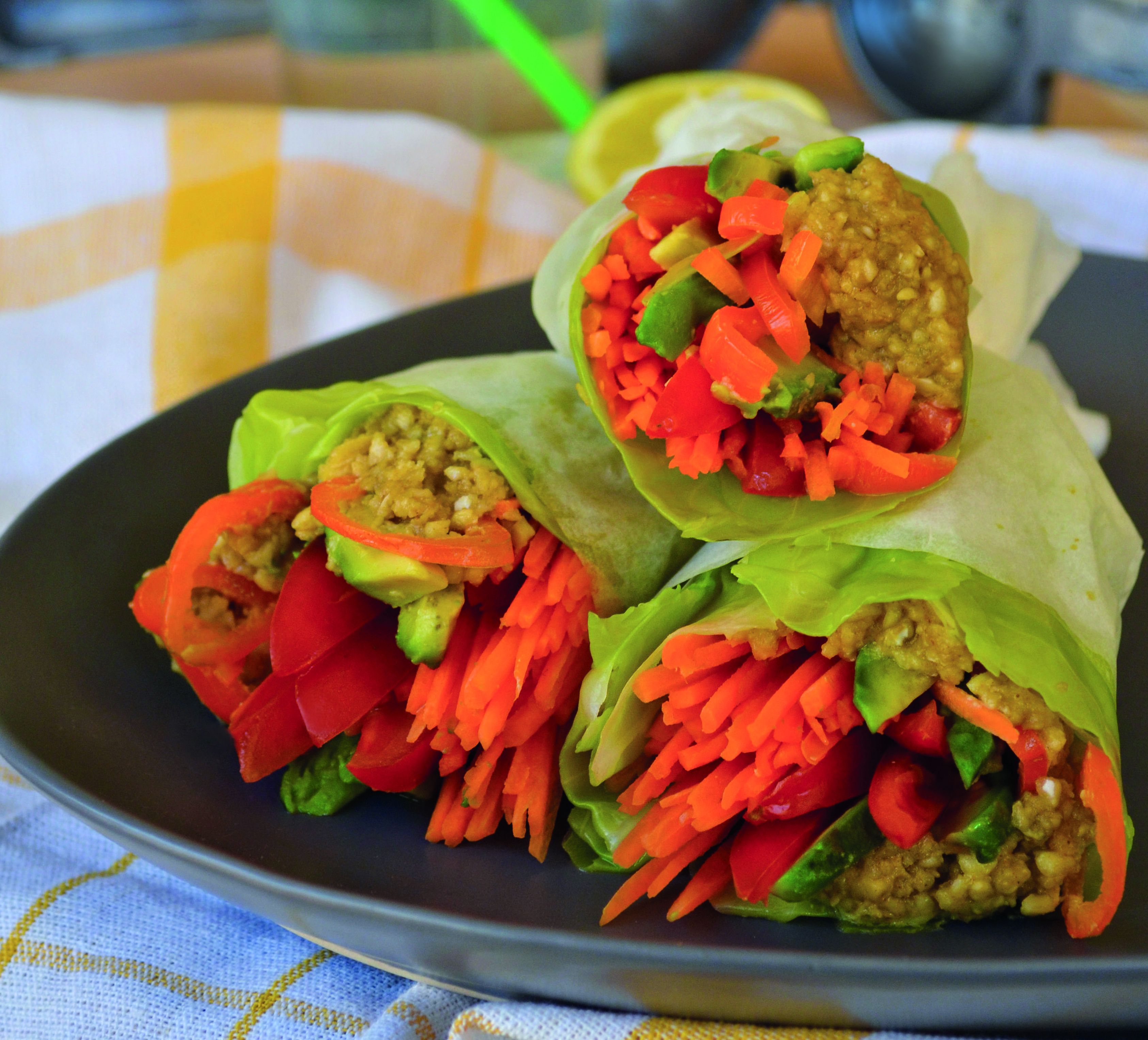 Πλένουμε τα φύλλα λάχανου και τα βάζουμε για 10′ σε ζεματιστό νερό. Με μαχαίρι, χαράζουμε την κεντρική τους ίνα για να ανοίγουν και να τυλίγονται ευκολότερα. Κόβουμε το αβοκάντο και τις πιπεριές σε φέτες. Σε μπλέντερ ή μούλτι βάζουμε τα κάσιους, το ελαιόλαδο, το κύμινο, το χυμό λεμόνι, τη σάλτσα σόγιας, το πιπέρι και τα χτυπάμε μέχρι να δημιουργηθεί μια πάστα. Τοποθετούμε στο κέντρο του κάθε φύλλου αβοκάντο, καρότο, πιπεριά και μία κουταλιά από την πάστα κάσιους. Τυλίγουμε σφιχτά σε λαδόκολλα σχηματίζοντας wraps.