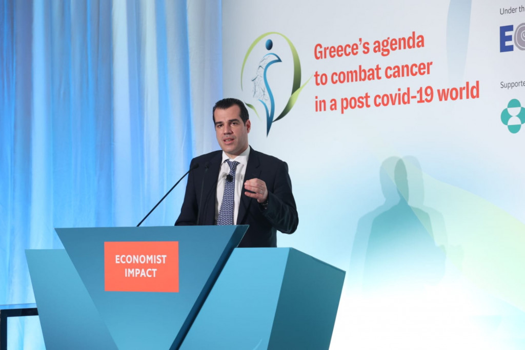 Από το βήμα του Economist ο υπουργός Υγείας Θάνος Πλεύρης μίλησε για μια στροφή από ένα ιατροκεντρικό σε ένα ασθενοκεντρικό σύστημα, στο πλαίσιο της πολιτικής υγείας. Αναφέρθηκε στο κενό που δημιουργήθηκε λόγω της πανδημίας όσον αφορά τον προσυμπτωματικό έλεγχο για τον καρκίνο και ανέφερε ότι η χρηματοδότηση από το Ευρωπαϊκό Ταμείο Ανάκαμψης και Ανθεκτικότητας (RRF) που θα γίνει στο πλαίσιο του σχεδίου «Ελλάδα 2.0» περιλαμβάνει συνολικές επενδύσεις ύψους 57 δισ. ευρώ σε διάφορους τομείς, περιλαμβάνοντας και την υγεία, στην οποία θα αποδοθεί περίπου 1,5 δισ. ευρώ, όπως είπε.