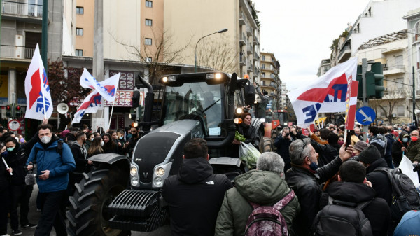 Λίγο πριν τις 2 το μεσημέρι της Παρασκευής 18 Μαρτίου έφτασε το κομβόι των τρακτέρ έξω από το υπουργείο Αγροτικής Ανάπτυξης και Τροφίμων στην πλατεία Βάθης, για να συμμετάσχουν στην πανελλαδική συγκέντρωση αγροτών και κτηνοτρόφων, που διοργάνωσε η Πανελλαδική Επιτροπή των Μπλόκων.