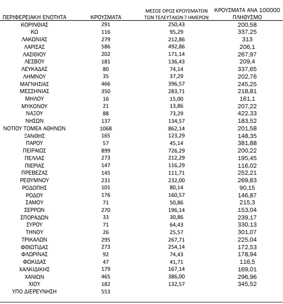 Τέλος, 553 κρούσματα βρίσκονται υπό διερεύνηση.