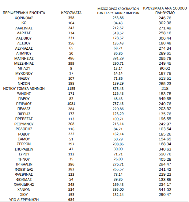 Τέλος, 684 κρούσματα βρίσκονται υπό διερεύνηση.