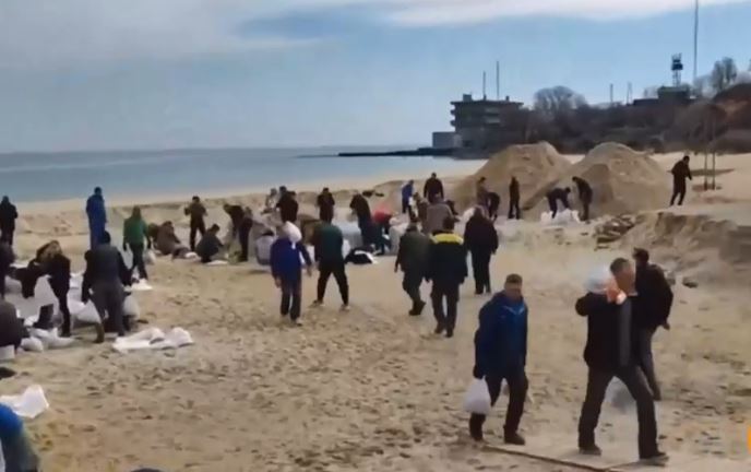Συγκεκριμένα, στο απόσπασμα το οποίο κυκλοφορεί, μικρά παιδιά, έφηβοι αλλά και ηλικιωμένοι άνδρες σκάβουν την παραλία της Οδησσού και γεμίζουν σακιά με άμμο τα οποία μεταφέρονται σε όποια σημεία της πόλης υπάρχει ανάγκη ώστε να στηθούν οδοφράγματα προκειμένου να εμποδιστεί με κάθε τρόπο η πιθανή προσπάθεια των Ρώσων να εισέλθουν στην πόλη.