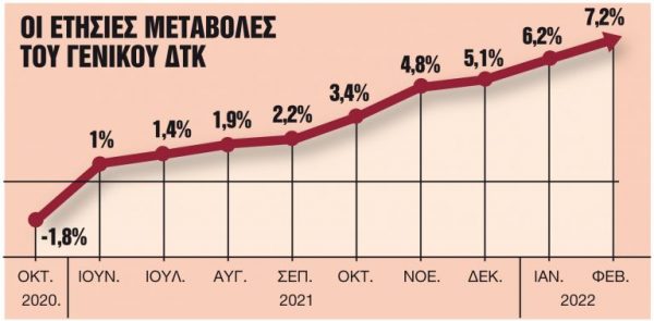 Analysts estimate that inflation, in 2022, will remain at the level of the first months, at 7%, as price pressures concern not only the energy sector but many other sectors, as well. Nightmarish scenarios even suggest an increase that can reach 11%. If these forecasts are confirmed, then the price rises will return to their highest level since 1994, when inflation surged (10.7%), while, in 1993, it was at 12%.