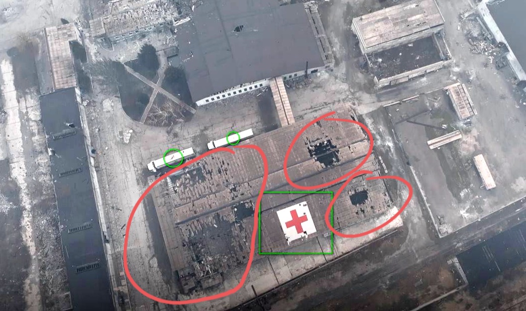 March 30: The evil #RussianArmy shelled a #hospital, marked – like in all European countries – with a large red cross on the roof. You see the aimed impacts! #warcrimes over war crimes each day! #RussiaUkraineWar #russianinvasion #PutinWarCriminal #Mariupol #Маріуполь #Мариуполь pic.twitter.com/b0QMFdUnAS