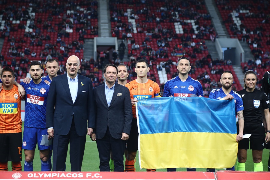 Ο Ολυμπιακός και η Σαχτάρ έδωσαν το βράδυ του Σαββάτου στο Καραϊσκάκη ένα φιλικό παιχνίδι ιστορικής σημασίας. Οι δυο ομάδες έστειλαν πολλαπλά αντιπολεμικά μηνύματα στο Καραϊσκάκη με αφορμή φυσικά τον πόλεμο στην Ουκρανία εδώ και περίπου 1,5 μήνα, με το αγωνιστικό να περνά όπως είναι λογικό σε δεύτερη μοίρα.