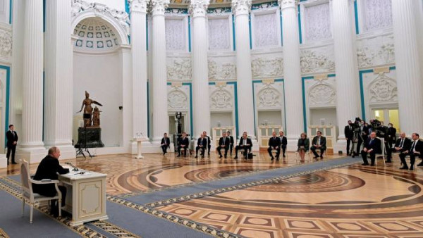 Ο πόλεμος ξεκίνησε με τον Πούτιν να πραγματοποιεί μια σύσκεψη του Συμβουλίου Ασφαλείας -που καλύφθηκε τηλεοπτικά- στην οποία ταπείνωσε τον Σεργκέι Ναρίσκιν, τον επικεφαλής της Ρωσικής Υπηρεσίας Πληροφοριών Εξωτερικού (SVR).