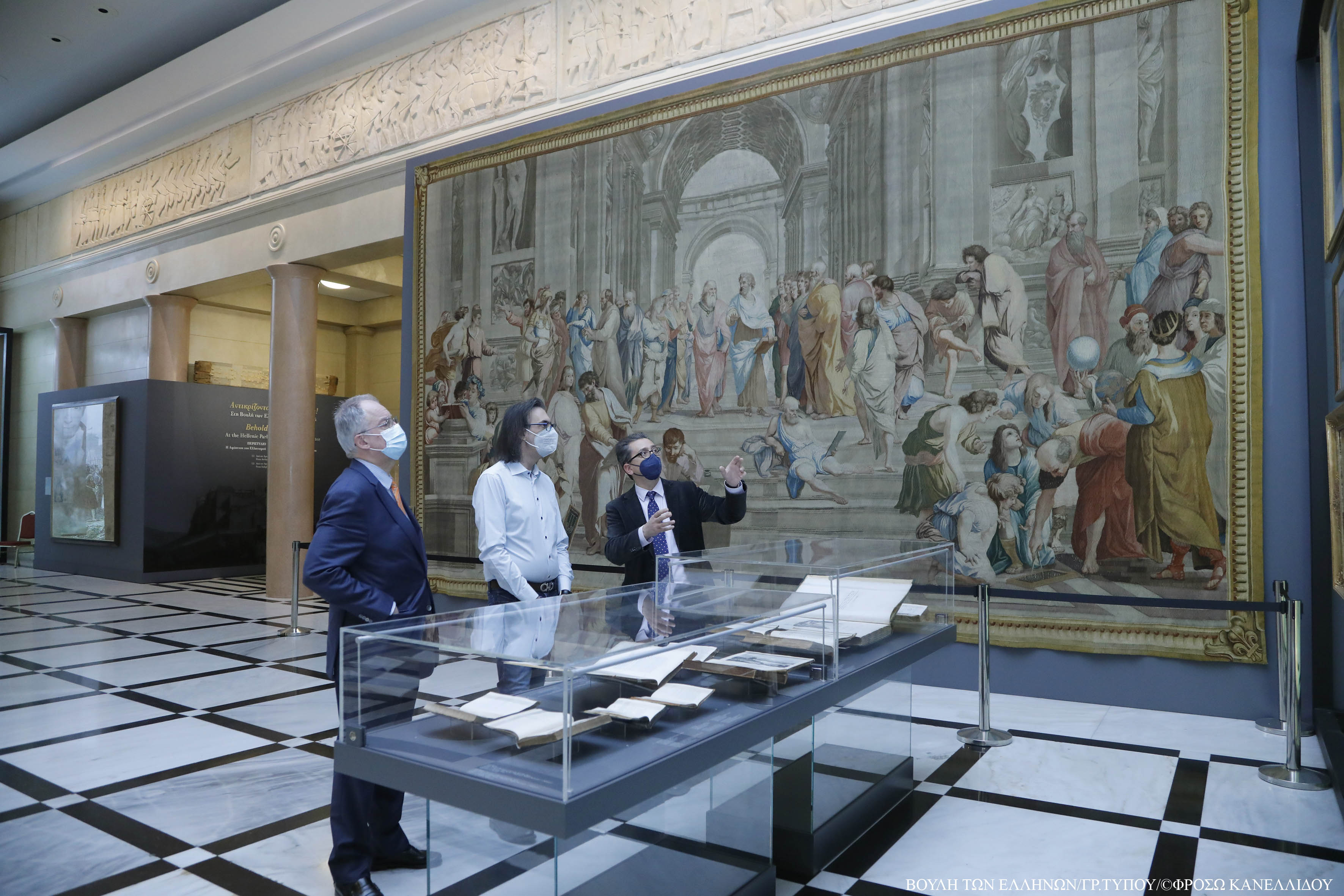 Αμέσως μετά την ξενάγηση, ο Πρόεδρος της Βουλής επέδωσε στον κ. Καβάκο το χρυσό μετάλλιο της Βουλής των Ελλήνων, για τη σημαντική του προσωπική συμβολή στην προαγωγή και αναγνώριση της ελληνικής πολιτιστικής δημιουργίας σε παγκόσμιο επίπεδο, αλλά και για την ανθρωπιστική του συμπαράσταση στον δοκιμαζόμενο λαό της Ουκρανίας.