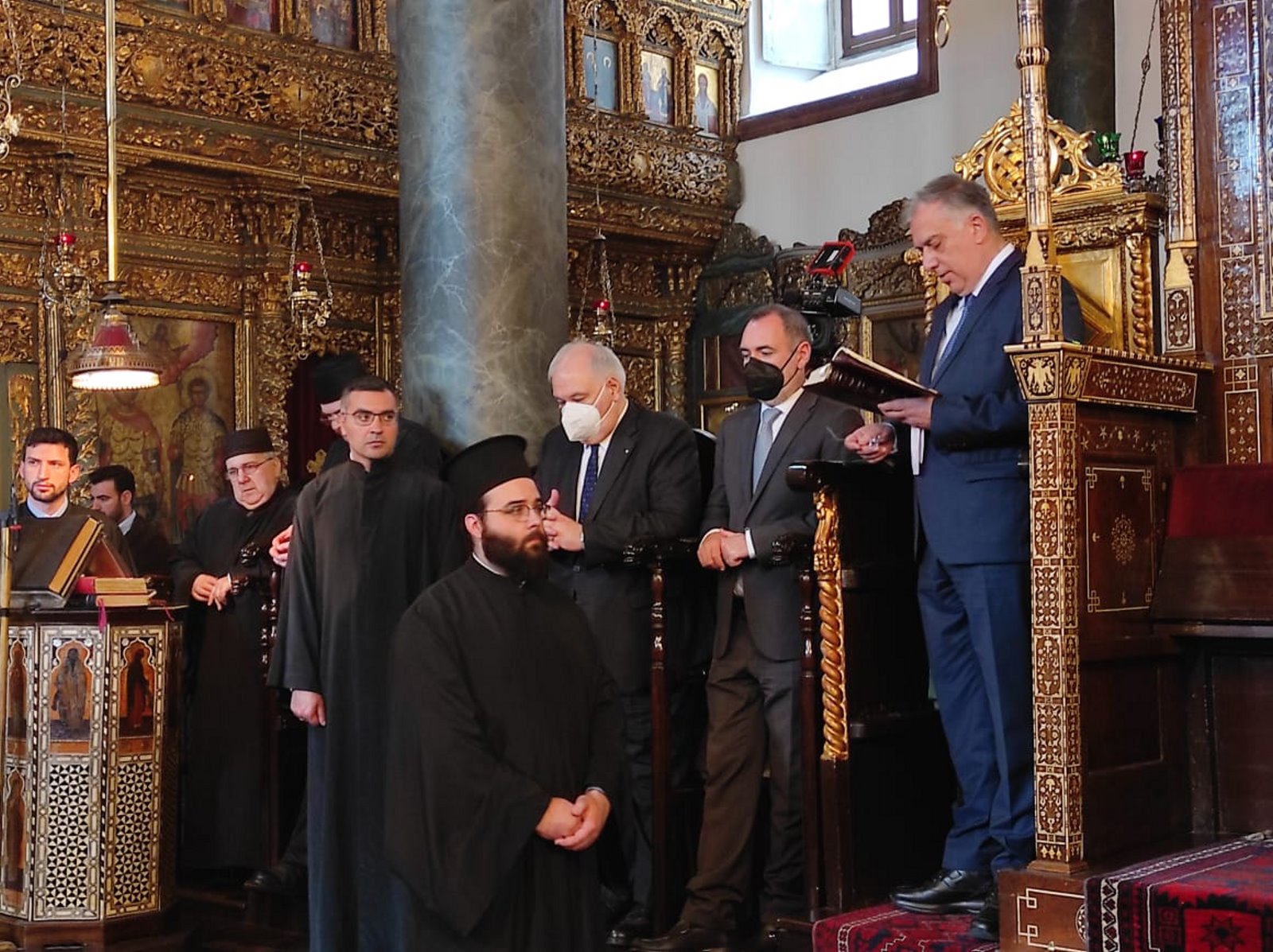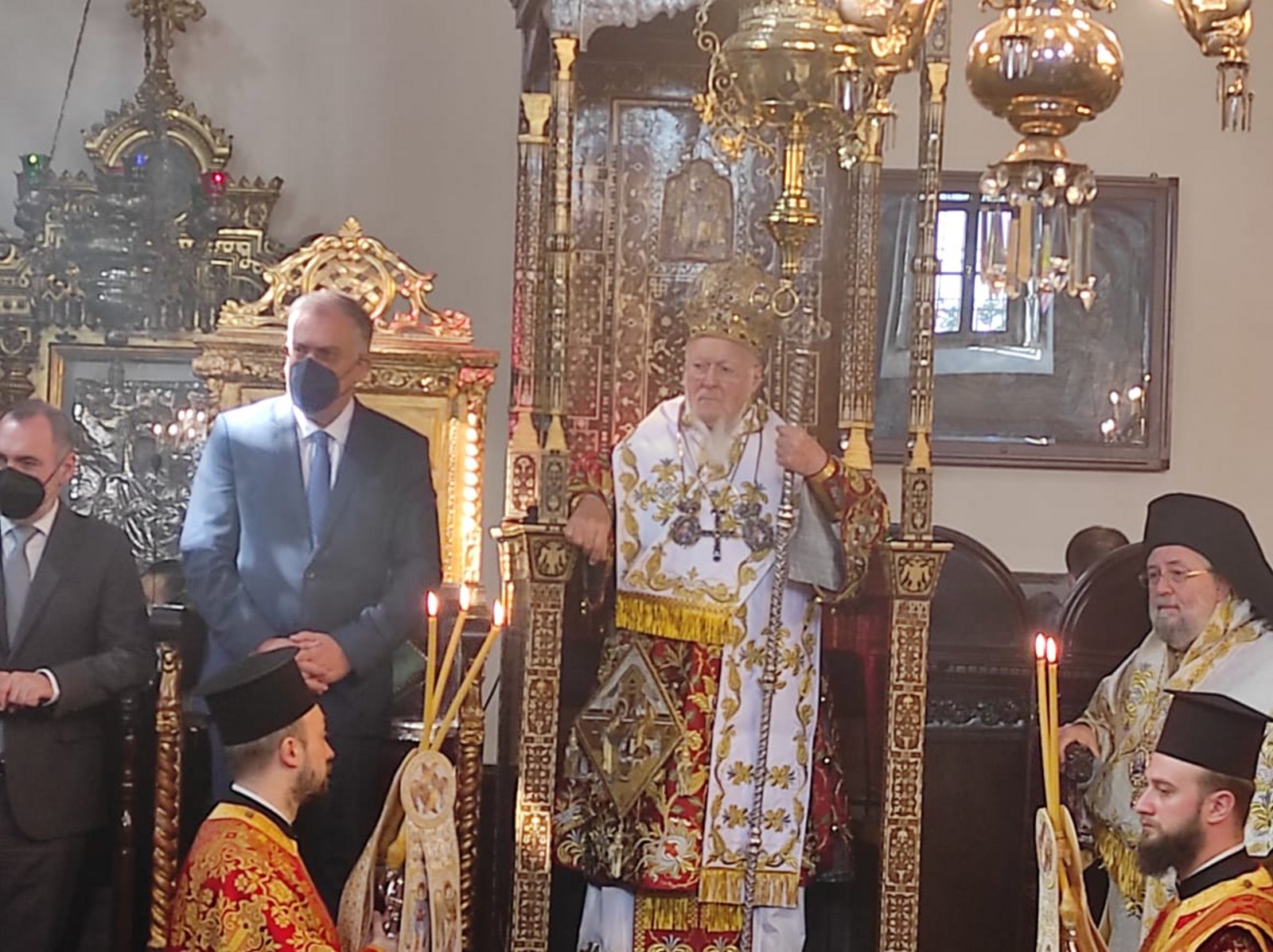 Στην Συνοδική Πατριαρχική Θεία λειτουργία για τον καθαγιασμό του Αγίου Μύρου, που πραγματοποιείται κάθε 10 χρόνια και τελέστηκε από τον Οικουμενικό Πατριάρχη κ.κ. Βαρθολομαίο στον Πατριαρχικό Ναό του Αγίου Γεωργίου στο Φανάρι, παρέστη σήμερα, Μεγάλη Πέμπτη, ο υπουργός Προστασίας του Πολίτη Τάκης Θεοδωρικάκος, συνεχίζοντας την προσκυνηματική του επίσκεψη στο Οικουμενικό Πατριαρχείο.