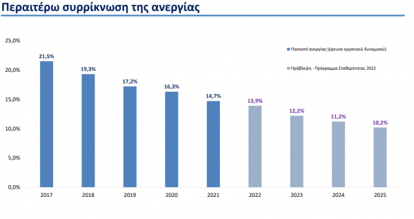 Οι παραπάνω εκτιμήσεις εμπεριέχονται στο Πρόγραμμα Σταθερότητας 2022-2025, το οποίο παρουσίασε πριν λίγο στο υπουργικό συμβούλιο ο υπουργός Οικονομικών Χρήστος Σταϊκούρας.