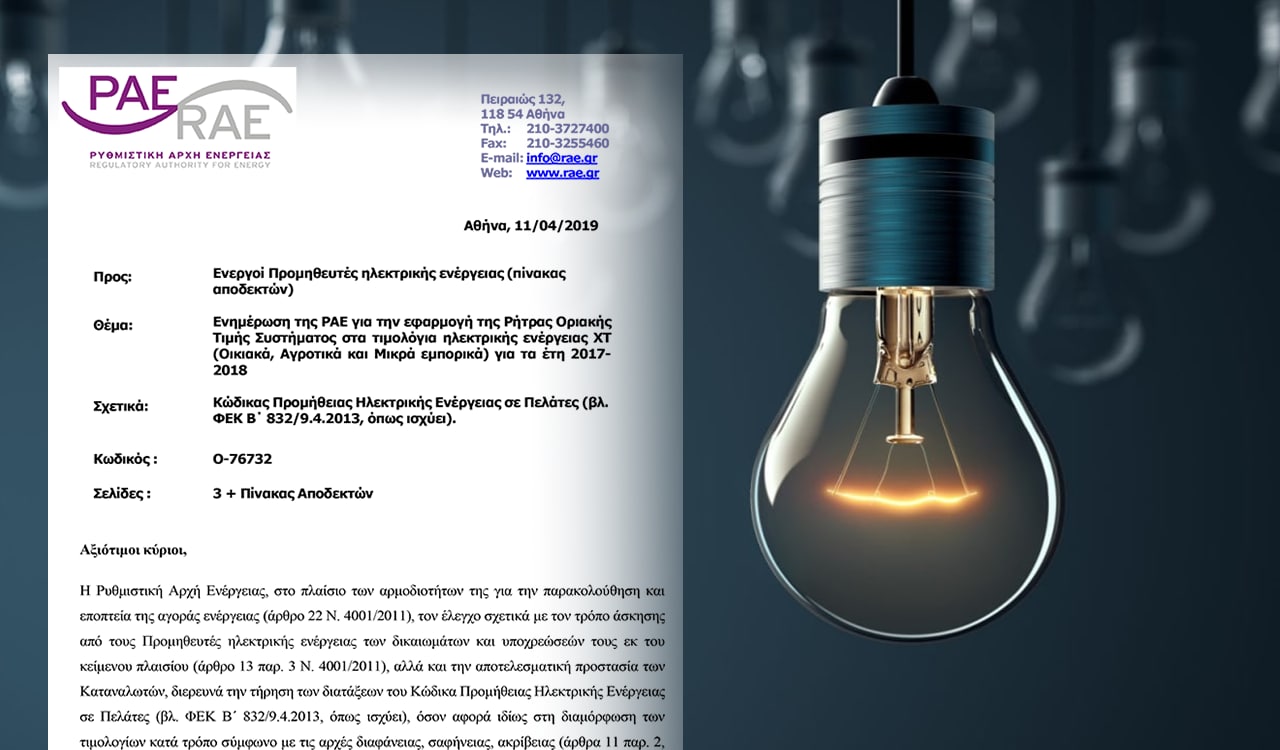 Η ΡΑΕ επίσης επικαλείται το λόγο της κινητοποίησής της όχι μόνο επειδή έχει την αρμοδιότητα του ελέγχου της διαφάνειας των χρεώσεων αλλά και επειδή «έχει γίνει (σ.σ. η ΡΑΕ) αποδέκτης διαμαρτυριών από καταναλωτές αναφορικά με την επαύξηση του ενεργειακού τους κόστους, σε συνέχεια της ενεργοποίησης της ρήτρας προσαρμογής από τους Προμηθευτές τους». Πρόκειται για αναφορά στο έγγραφο της 11ης Απριλίου 2019, το οποίο απεστάλη στους προμηθευτές στις 25 Απριλίου του 2019, η οποία επιβεβαιώνει και τις αυξήσεις που έγιναν την περίοδο 2017-2018 στους λογαριασμούς ρεύματος εξαιτίας της ενεργοποίησης της ρήτρας αναπροσαρμογής.