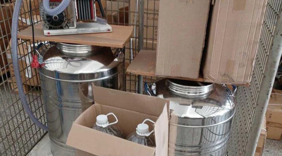 Το παράνομο – και απολύτως επικίνδυνο για την υγεία – αλκοόλ παρασκευαζόταν και εμφιαλωνόταν σε παράνομο εμφιαλωτήριο, στην ταράτσα του κτιρίου.