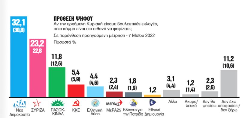Οι μεταβολές στην πρόθεση ψήφου υπέρ της ΝΔ και η νέα εικόνα που αναδεικνύεται για την αντιπαράθεση κυβέρνησης – αξιωματικής αντιπολίτευσης ακολουθούν τον θετικό αντίκτυπο για την πλειονότητα των ερωτηθέντων τόσο από τη διαχείριση των εθνικών θεμάτων, με αποκορύφωμα τη συνάντηση Μπάιντεν – Μητσοτάκη στον Λευκό Οίκο και την ιστορικού χαρακτήρα πρωθυπουργική ομιλία στο Κογκρέσο, όσο και από τα μέτρα ανάσχεσης του κύματος ακρίβειας, πρωτίστως με την κυβερνητική κάλυψη μεγάλου ποσοστού των αυξήσεων στο ηλεκτρικό ρεύμα. Είναι προφανές ότι μέσα σε αυτό το σκηνικό επανέρχεται μεν η εκλογολογία στο προσκήνιο, αλλά παράλληλα ο Πρωθυπουργός κινείται μέσα σε ένα λιγότερο πιεστικό κλίμα για την υλοποίηση του κυβερνητικού σχεδιασμού.