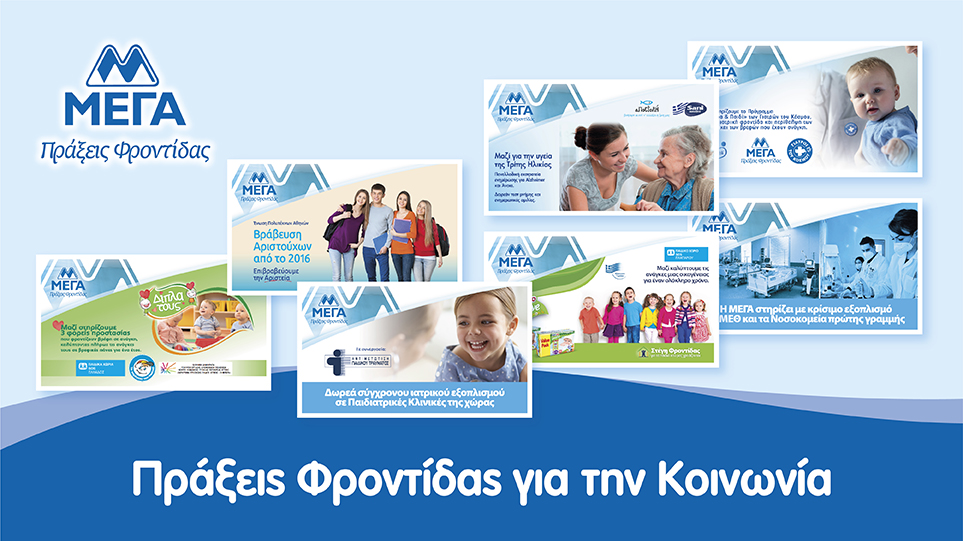 - Πρόγραμμα “Μητέρα και Παιδί” σε συνεργασία με τους Γιατρούς του Κόσμου. Η ΜΕΓΑ στηρίζει για 4η συνεχή χρονιά την ιατροφαρμακευτική περίθαλψη νεογνών, παιδιών και εγκύων, που ανήκουν σε ευάλωτες πληθυσμιακές ομάδες. Έως σήμερα έλαβαν παιδιατρική φροντίδα πάνω από 5.000 βρέφη και παιδιά, γυναικολογική φροντίδα πάνω από 600 έγκυες και νέες μητέρες, ενώ διανεμήθηκαν πάνω από 3.000 Babylino Baby Kits.