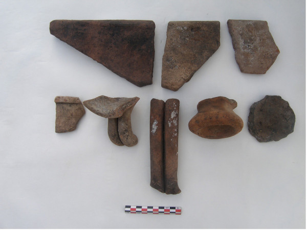 Από την τελευταία ανασκαφή προήλθε σημαντική ποσότητα σωρευμένης ανάμεικτης κεραμεικής (οστράκων αγγείων και κεράμων) των ιστορικών, κυρίως των Ελληνιστικών-Ρωμαϊκών, αλλά και μεταγενεστέρων χρόνων, ενώ μελαμβαφής Αττική κεραμεική της Υστεροκλασικής περιόδου σημειώθηκε και στο επίπεδο θεμελίωσης του τείχους. Εντοπίσθηκαν, ακόμη, πήλινα πώματα αμφορέων και λίγα θραύσματα μαρμάρινων αντικειμένων.
