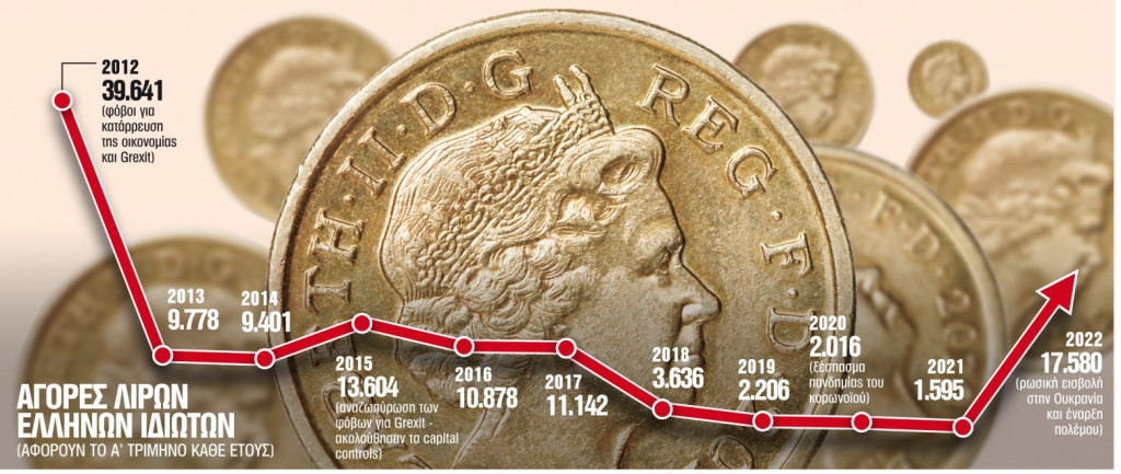 Ισως γιατί παραδοσιακά ο χρυσός αποτελεί μέσο διαφύλαξης αξίας, καθώς όταν ο πληθωρισμός ανεβαίνει, οι επενδυτές τείνουν να αγοράζουν χρυσό, αφού η πραγματική αξία των μετρητών πέφτει, ίσως γιατί ιστορικά στοιχεία δείχνουν πως 12 μήνες έπειτα από τα γεωπολιτικά σοκ που σημειώθηκαν μετά τον Β’ Παγκόσμιο Πόλεμο, ο χρυσός ως το κατεξοχήν «ασφαλές καταφύγιο» σημείωσε μέση άνοδο 17%, οι έλληνες ιδιώτες αγόρασαν το α’ τρίμηνο του 2022 από την ΤτΕ 17.580 χρυσές λίρες, που ήταν οι περισσότερες από α’ τρίμηνο του 2012, όταν τότε η κρίση χρέους και τα Μνημόνια είχαν οδηγήσει αντίστοιχα τους ιδιώτες σε αγορές 39.641 χρυσών λιρών.