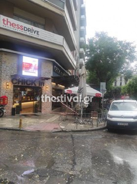Προσγειώθηκε στο πεζοδρόμιο μπροστά από κατάστημα εστίασης. Ευτυχώς, τη στιγμή εκείνη δεν περνούσε κανείς.