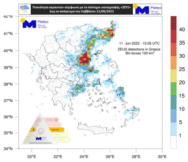 Όπως φαίνεται στον χάρτη που παρουσιάζει την πυκνότητα κεραυνών, οι περισσότεροι ανιχνεύθηκαν στην Θράκη, στο Βόρειο Αιγαίο, στην Εύβοια και στην Ανατολική Θεσσαλία και Στερεά, συμπεριλαμβανομένης της Αττικής.