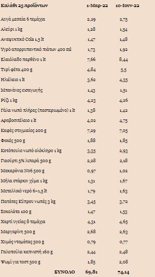 Στο επώνυμο αραβοσιτέλαιο (μπουκάλι του ενός λίτρου) η αύξηση της τιμής καταναλωτή ήταν 18,1%, στο ηλιέλαιο 20,1%, ενώ στο ψωμί του τοστ (συσκευασία των 500g) η άνοδος στη μέση τιμή μεταξύ της 1ης Μαρτίου και 10ης Ιουνίου ήταν 12,4%, στο 2,08 ευρώ από 1,85 ευρώ.