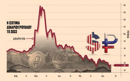 Απομονωμένη, όμως, η Ρωσία από τις διεθνείς αγορές με κανέναν τρόπο δεν μπορεί να χαρακτηριστεί, όπως υποδηλώνει εξάλλου και η ισοτιμία του ρουβλίου με τα δυτικά νομίσματα, η οποία όχι μόνο έχει υπερκαλύψει τις αρχικές απώλειες που υπέστη μετά την εισβολή, αλλά ενισχύεται σημαντικά (σχεδόν 25% έναντι του δολαρίου) συγκριτικά με τα επίπεδα που βρισκόταν προτού ξεσπάσει ο πόλεμος.