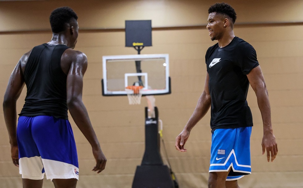 Έτσι, ο ηγέτης των Μιλγουόκι Μπακς βρέθηκε στο Στάδιο Ειρήνης και Φιλίας μαζί με τον αδερφό του Άλεξ και το έριξαν στην προπόνηση για να παραμείνουν σε φόρμα.