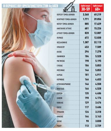 Σύμφωνα με τα επίσημα στοιχεία του υπουργείου Υγείας, έως και την Παρασκευή το πρωί από τη δεξαμενή των ανθρώπων ηλικίας 30-59 ετών είχαν κάνει την τέταρτη δόση περί τους 15.300, ενώ την ίδια στιγμή εκκρεμούσαν περισσότερα από 17.750 ραντεβού. Μάλιστα, όπως προκύπτει από τα ίδια δεδομένα στην Αττική, στη Θεσσαλονίκη αλλά και στο Ηράκλειο Κρήτης εντοπίζεται η πλειονότητα των νεότερων πολιτών που επέλεξαν να εμβολιαστούν.